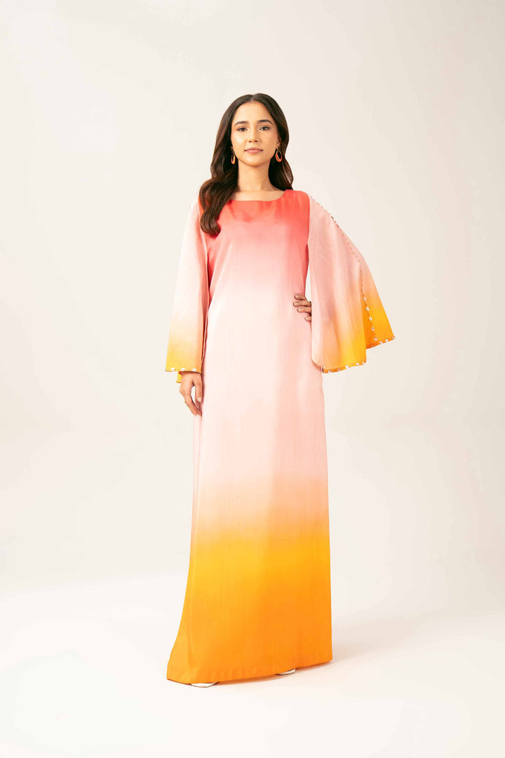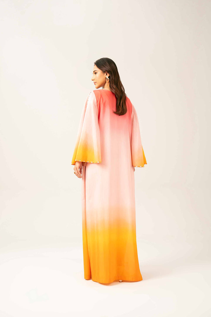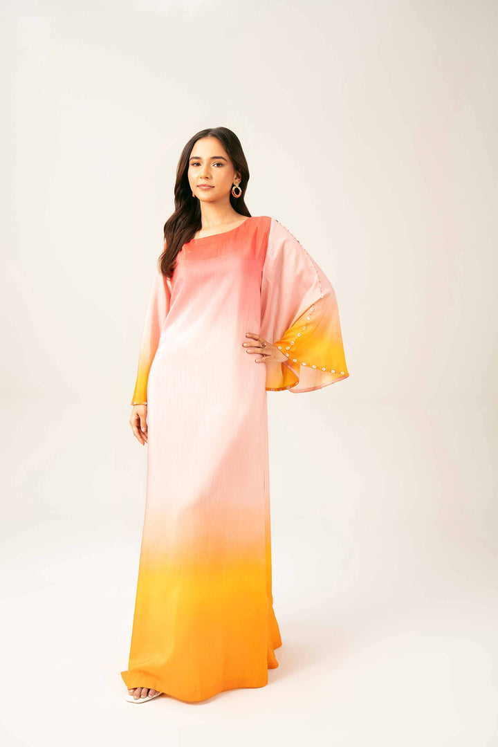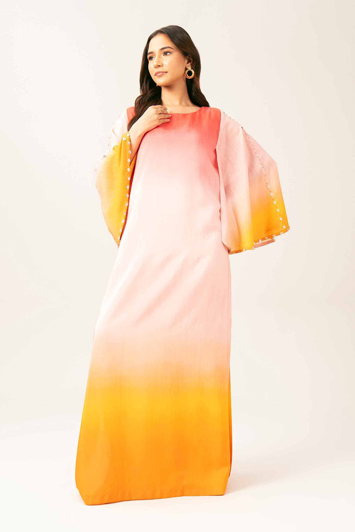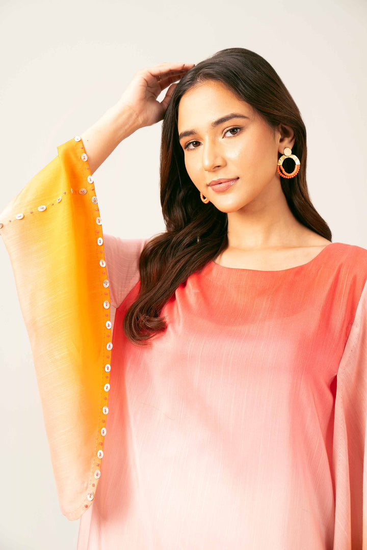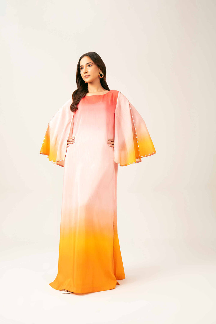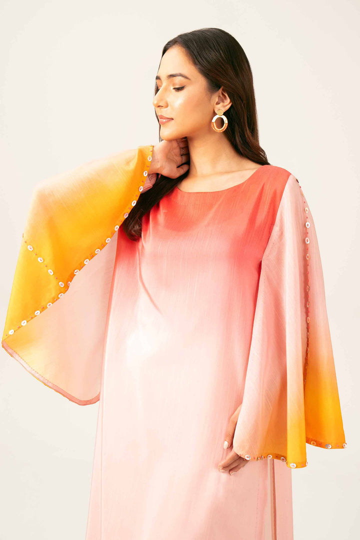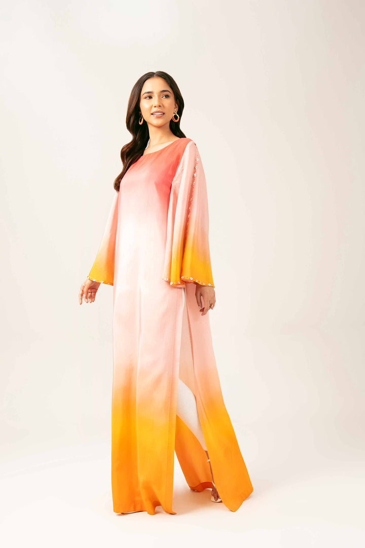Boat Neckline, Adda Work On Cape Sleeves, Long Shirt With Long Side Slit