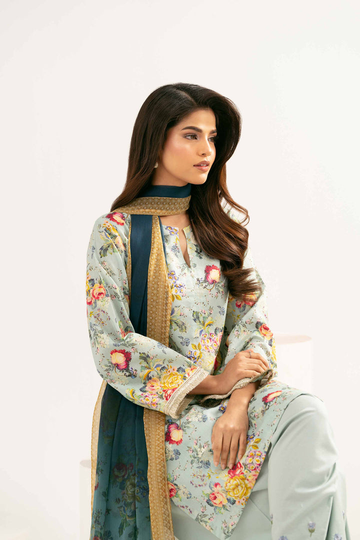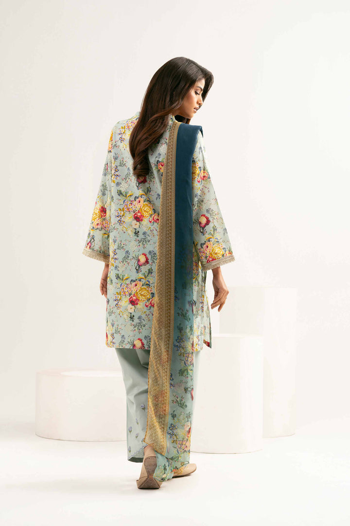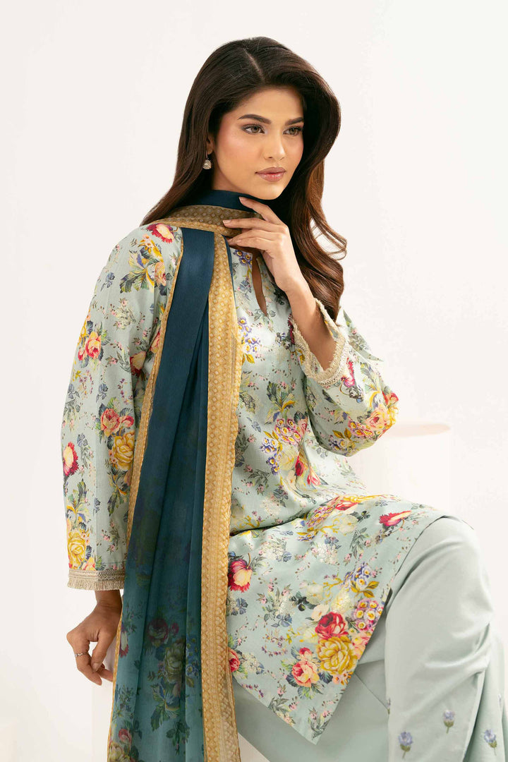 Enhance the value of the entire clothing with this printed embroidered three-piece suit from the latest pret summer collection.