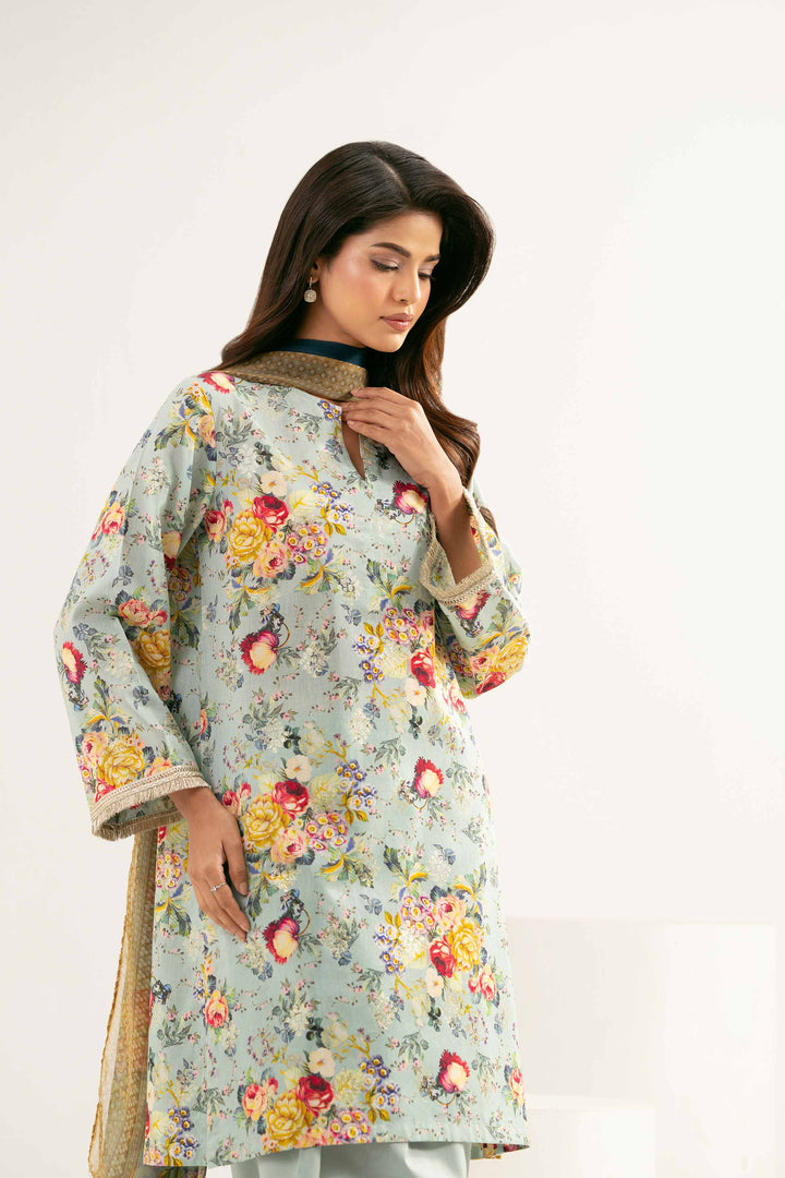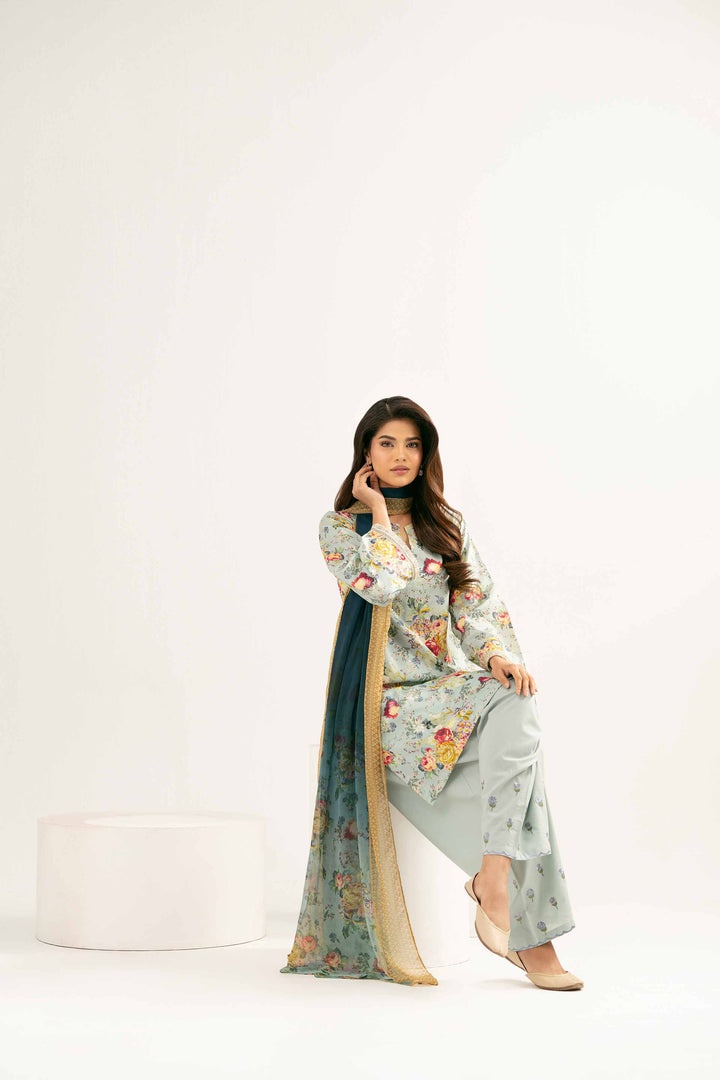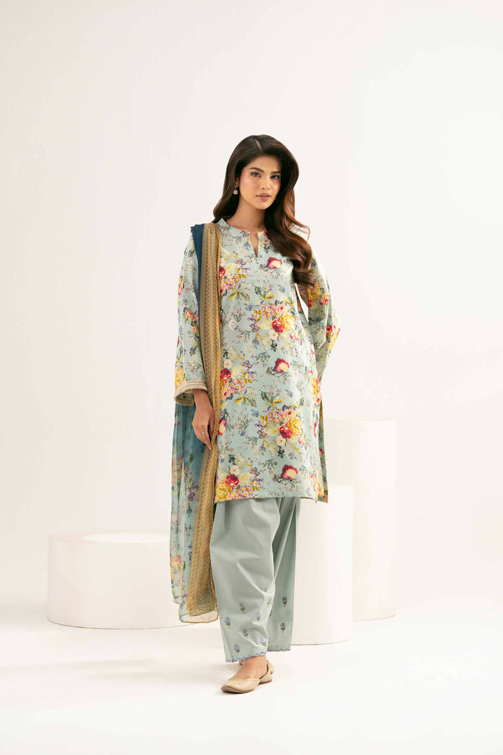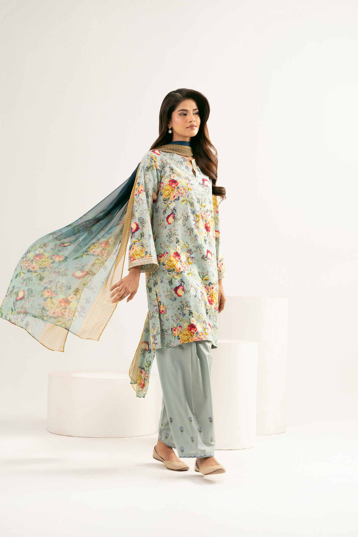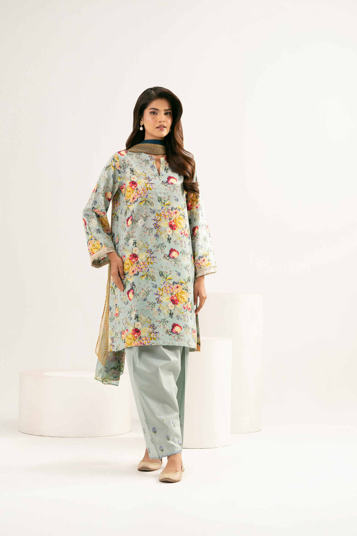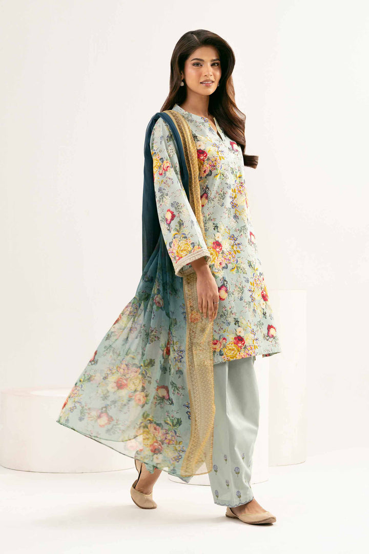 Printed Embroidered Shirt With Dupatta & Shalwar